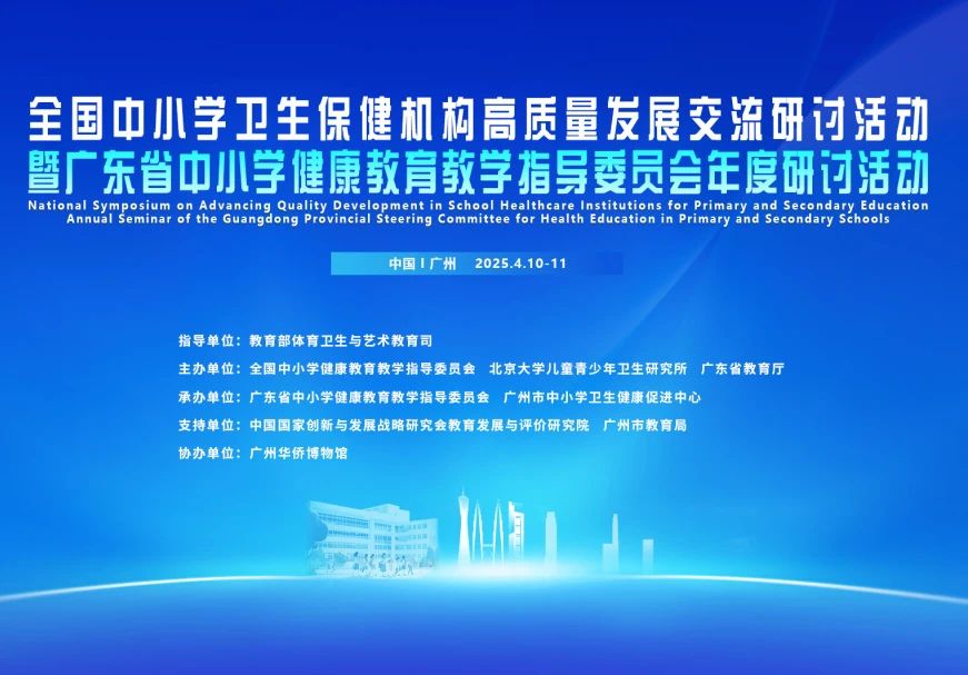 2025年4月10至11日,“全國中小學(xué)衛(wèi)生保健機(jī)構(gòu)高質(zhì)量發(fā)展交流研討活動暨廣東省中小學(xué)健康教育教學(xué)指導(dǎo)委員會年度研討活動”在廣州成功舉辦。活動由教育部體育衛(wèi)生與藝術(shù)教育司指導(dǎo),全國中小學(xué)健康教育教學(xué)
